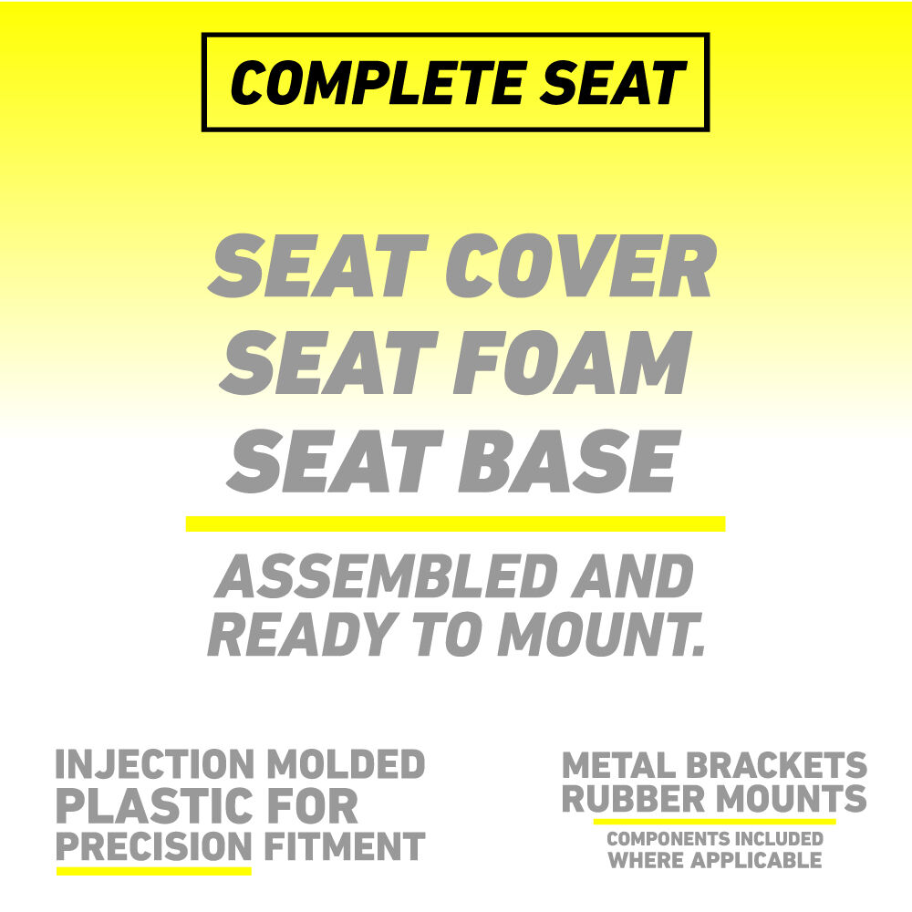 Each complete seat features a seat base, seat foam and seat cover fully assembled and ready to bolt onto your bike.