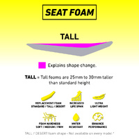 · 25mm to 30mm TALLER than standard seat foam height (Bike model variance)